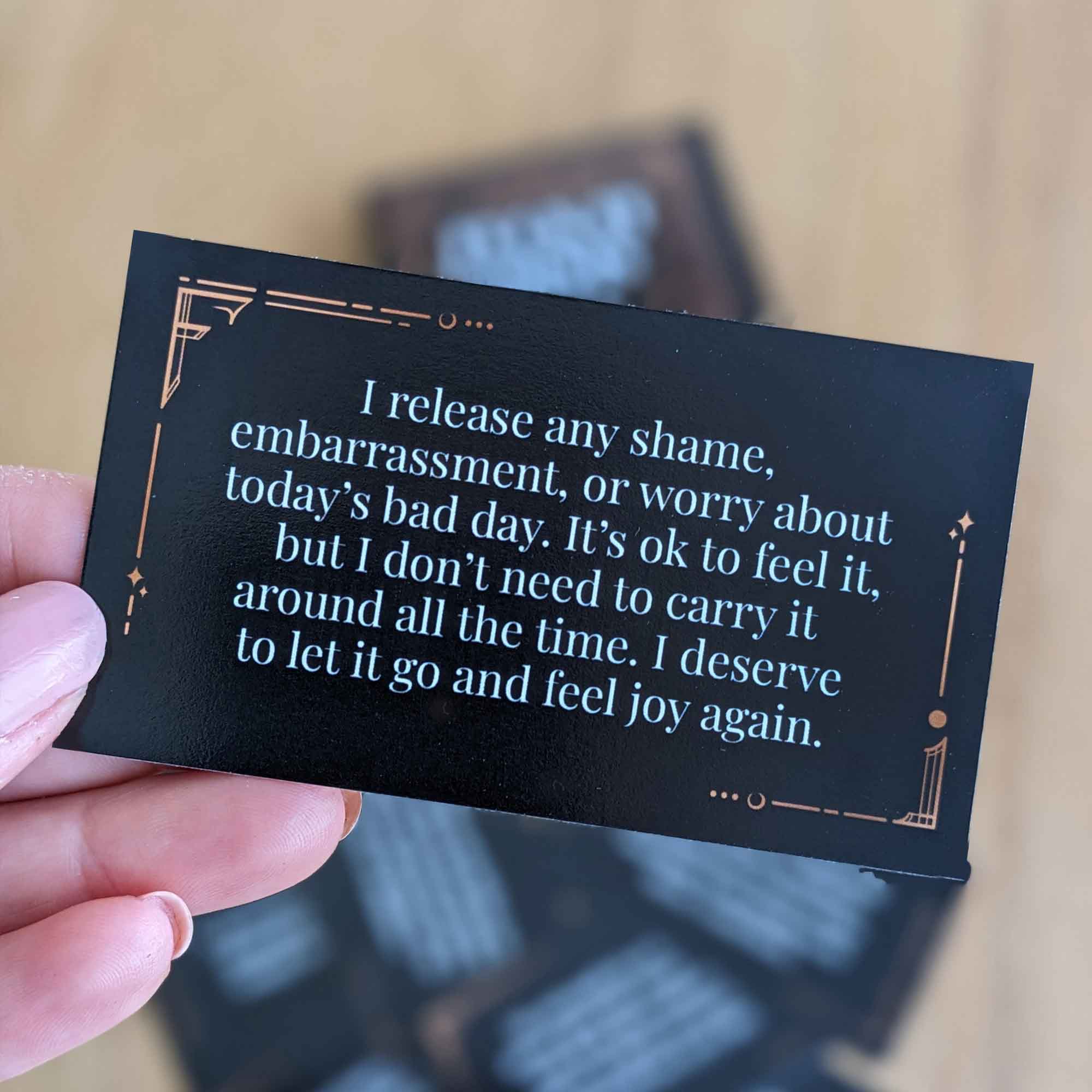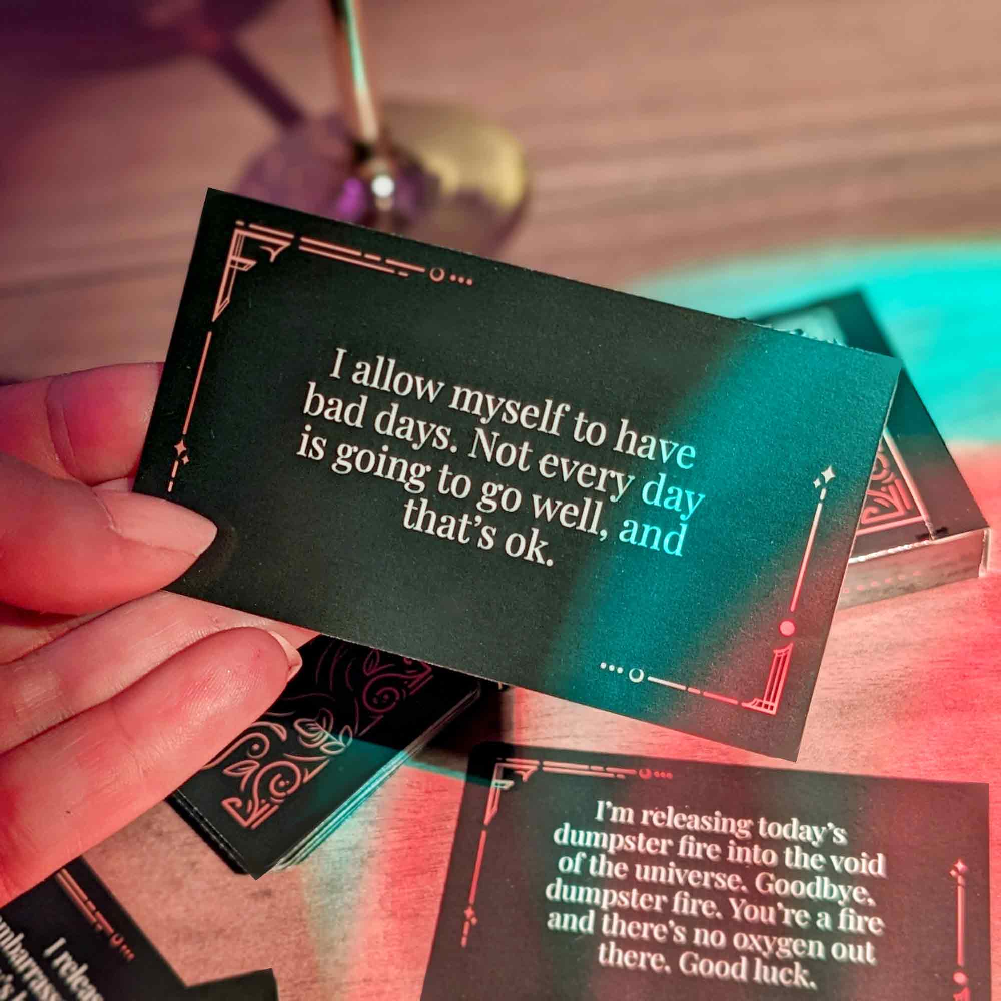 This deck contains 30 cards of what I like to call “fvck it logic” - really just another term for radical acceptance of your very bad day and the sh!tty feelings around it.